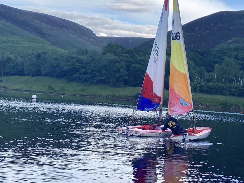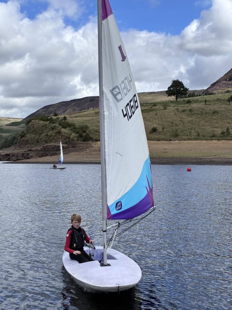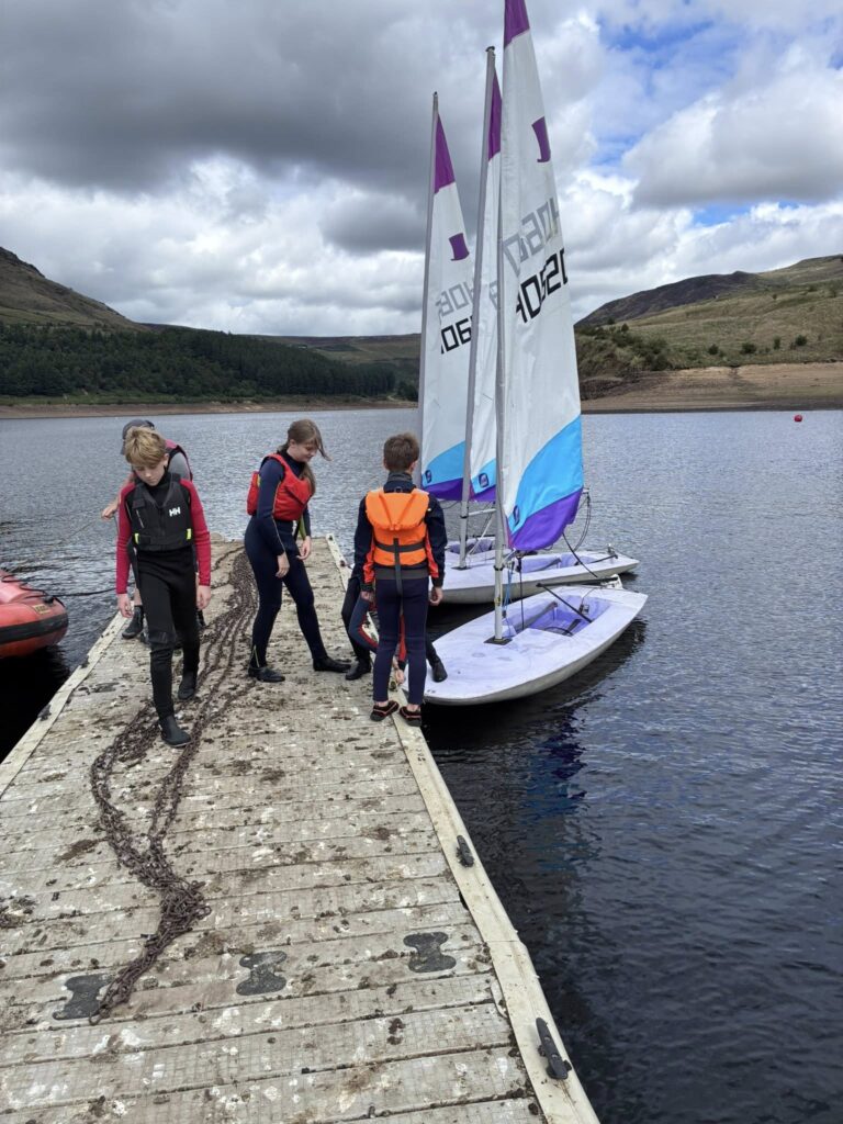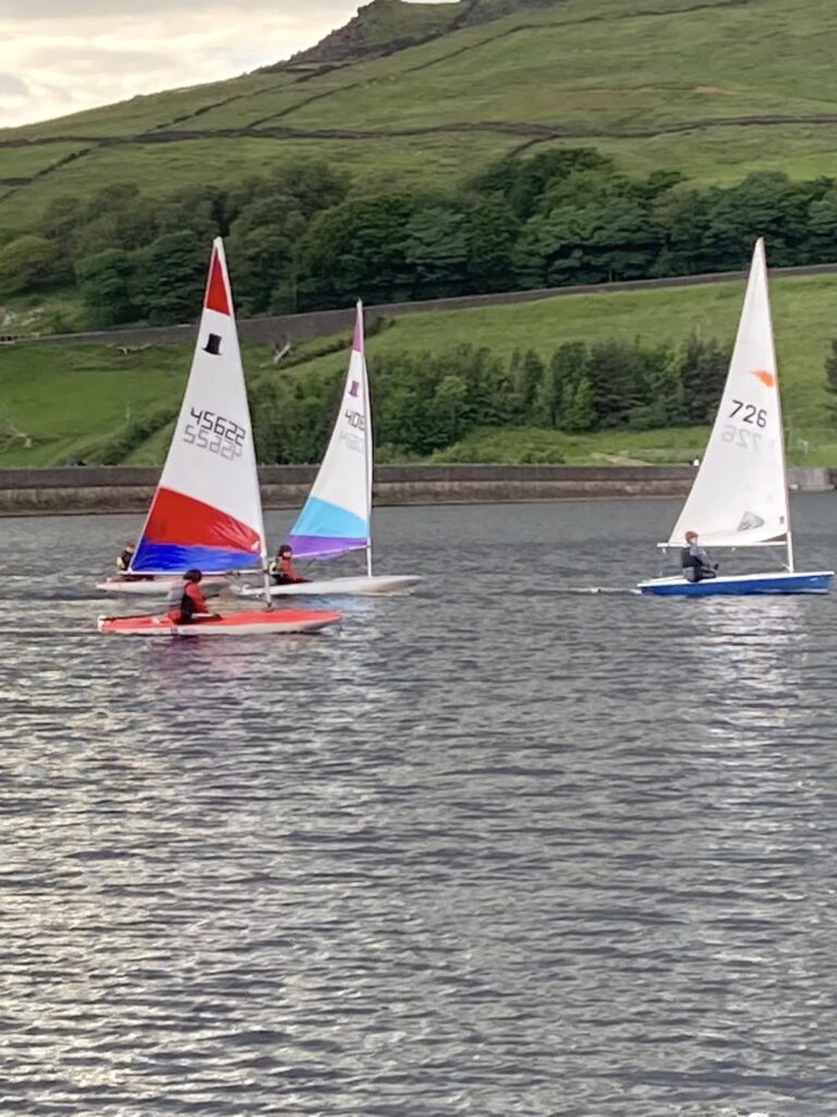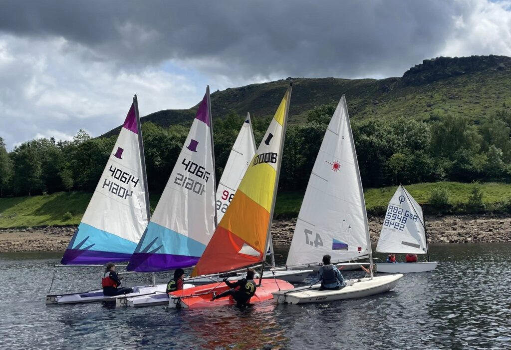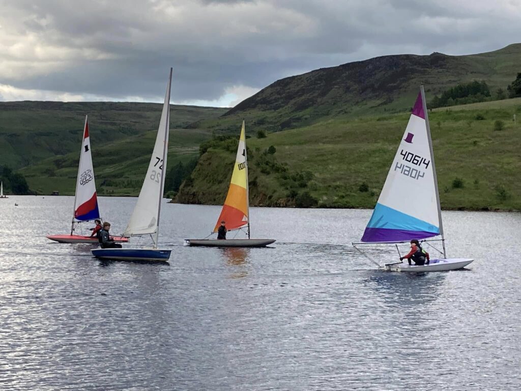 Most children love the water, and at Dovestone Sailing Club they learn a few skills, play, make friends and generally have fun. The youth group meets on Friday evenings in spring and summer for skills development activities alongside time for unstructured sailing fun. This is included in the club membership fee. It is not a ‘drop and go’ activity – parents are expected to stay on-site at all times and assist with changing and boat rigging alongside our more experienced sailors.
